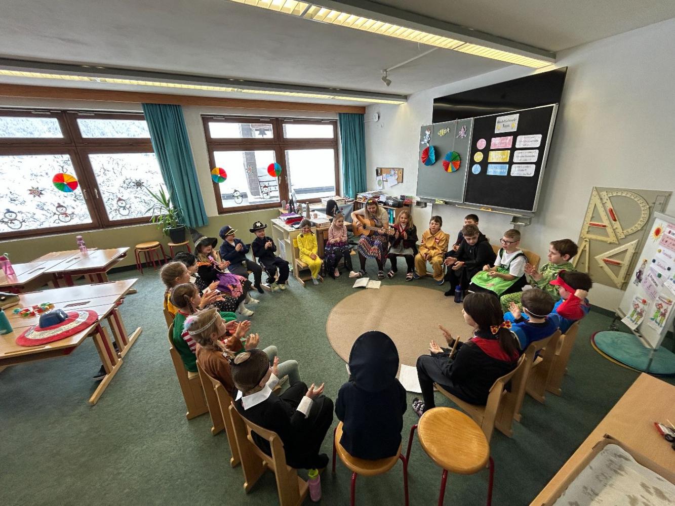 Anschließend sangen und tanzten wir gemeinsam. Bei einer Modenschau präsentierten die Kinder stolz ihre fantasievollen Kostüme. Zum Abschluss sorgten gemeinsame Spiele im Turnsaal für gute Stimmung.